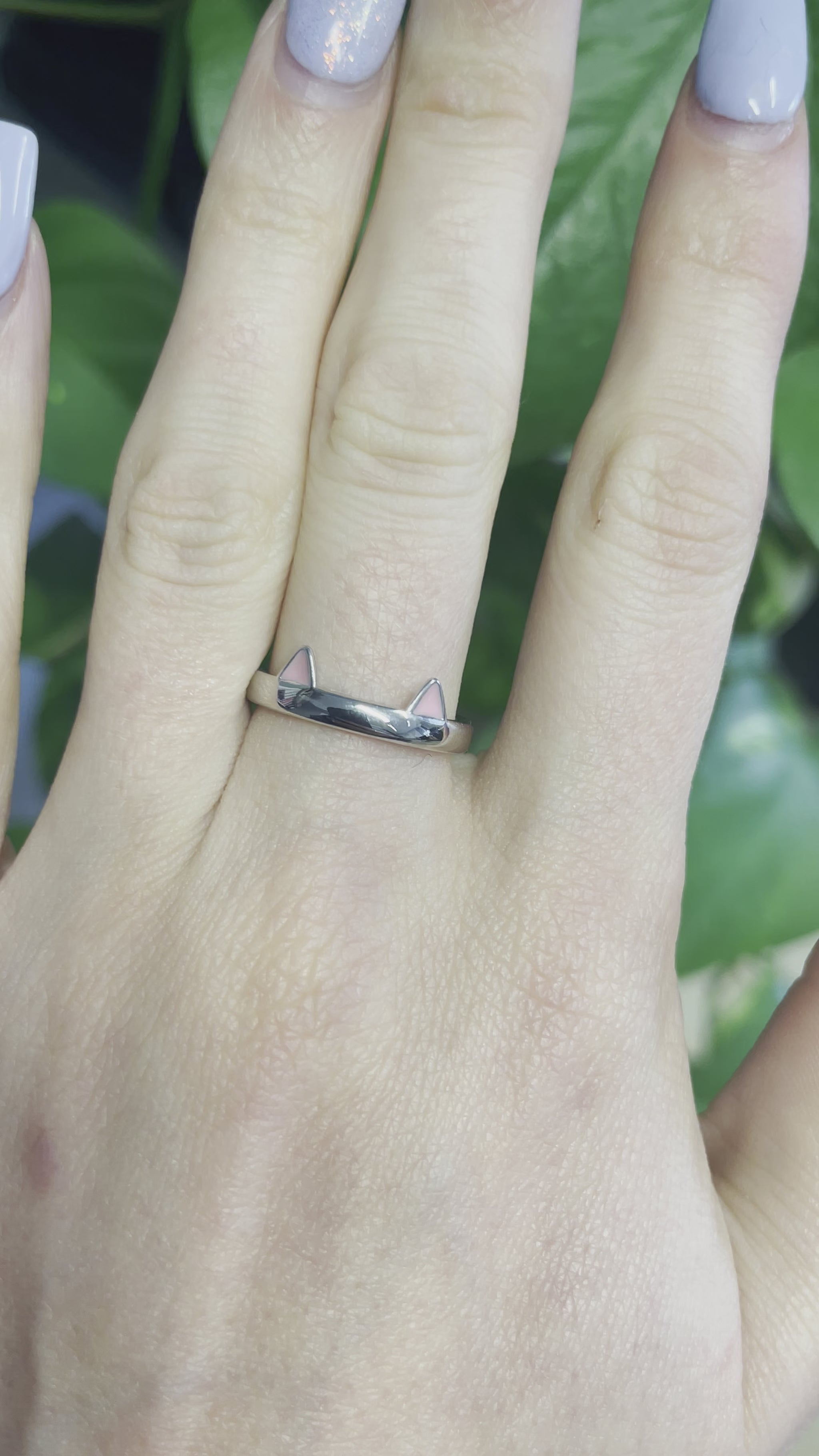 Cat Ears - Silver & Pink Ears Ring - Adjustable